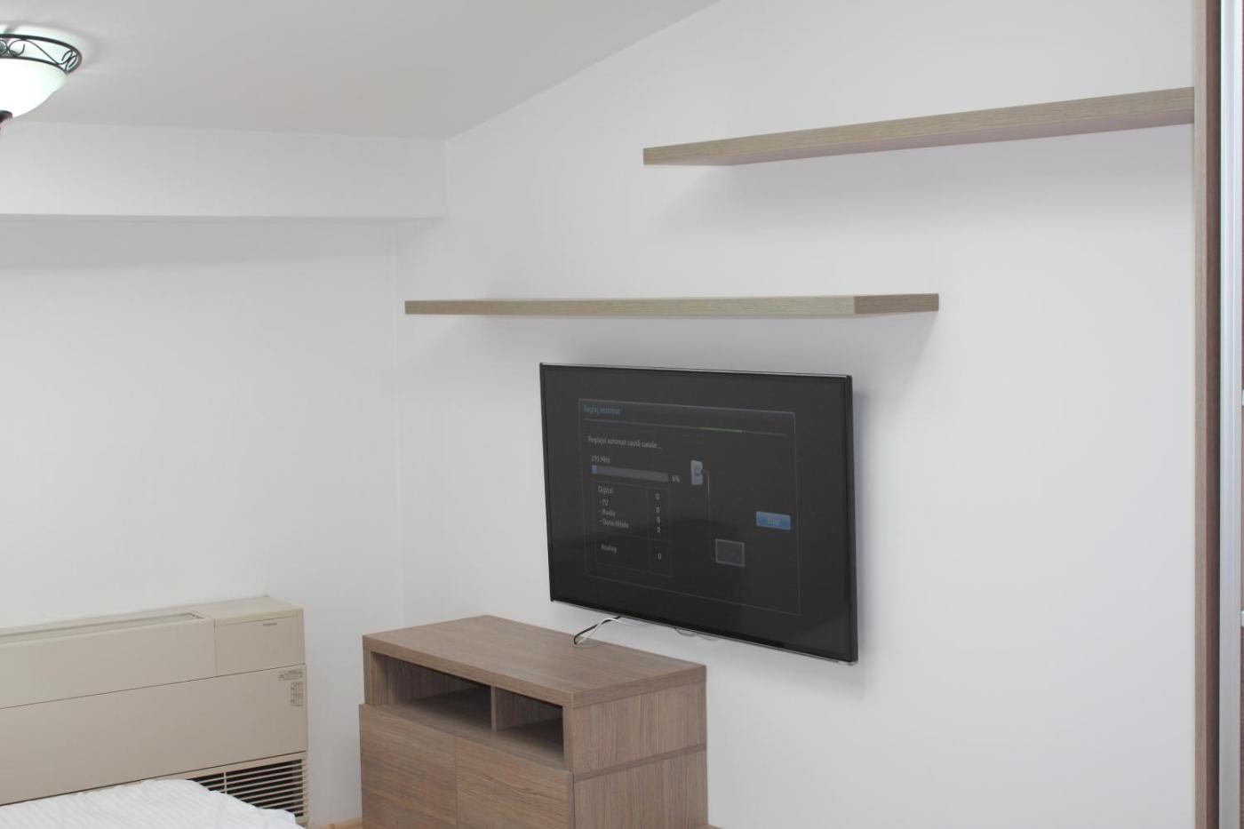 One-Bedroom Apartment. This apartment includes 1 living room, 1 separate bedroom and 1 bathroom with a walk-in shower and free toiletries. This apartment is air-conditioned and has a flat-screen TV with cable channels, an electric kettle, a sofa and heating. The unit has 1 bed.